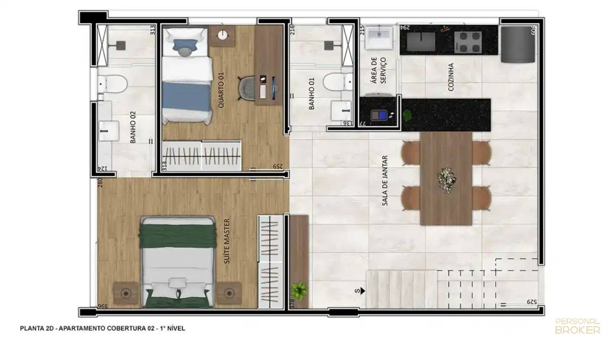 O imóvel tem 1 quartos, sendo 1 suíte, possui 2 banheiros e 2 vagas de garagem.