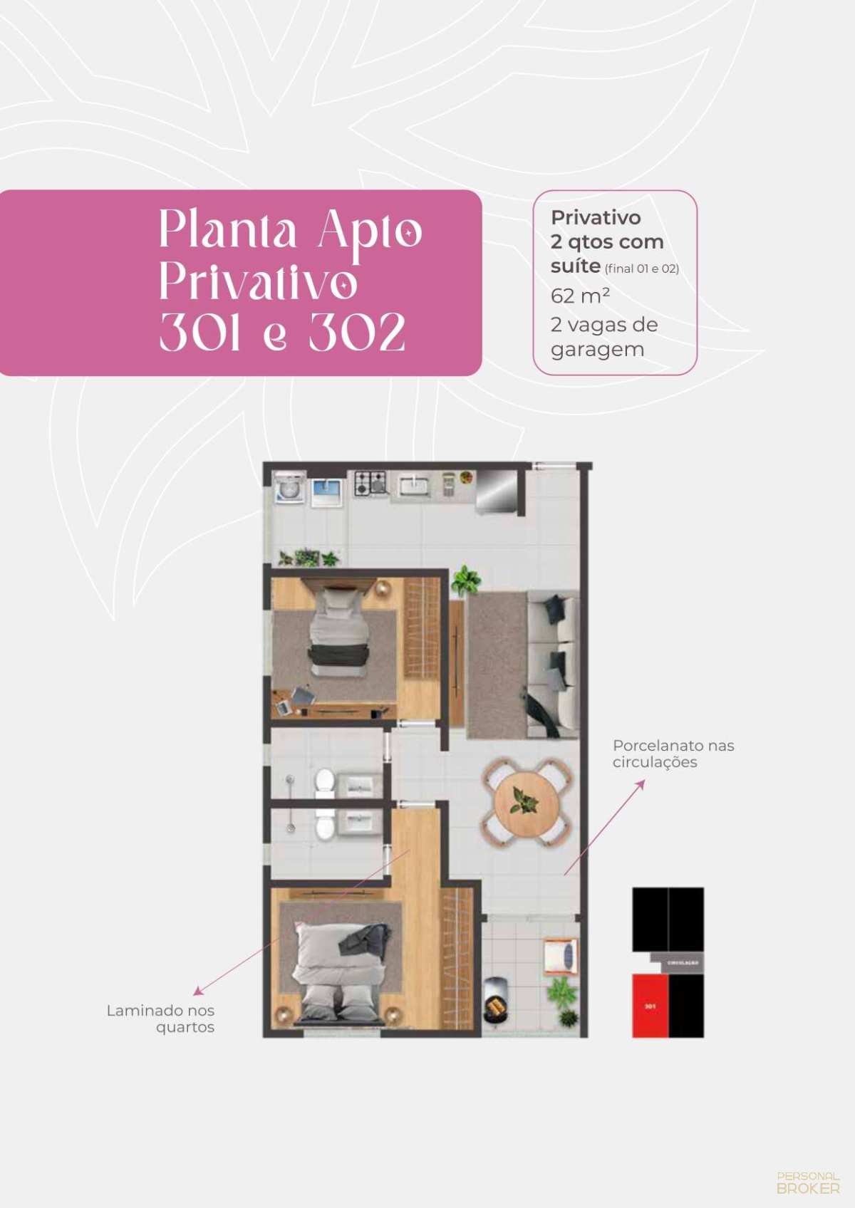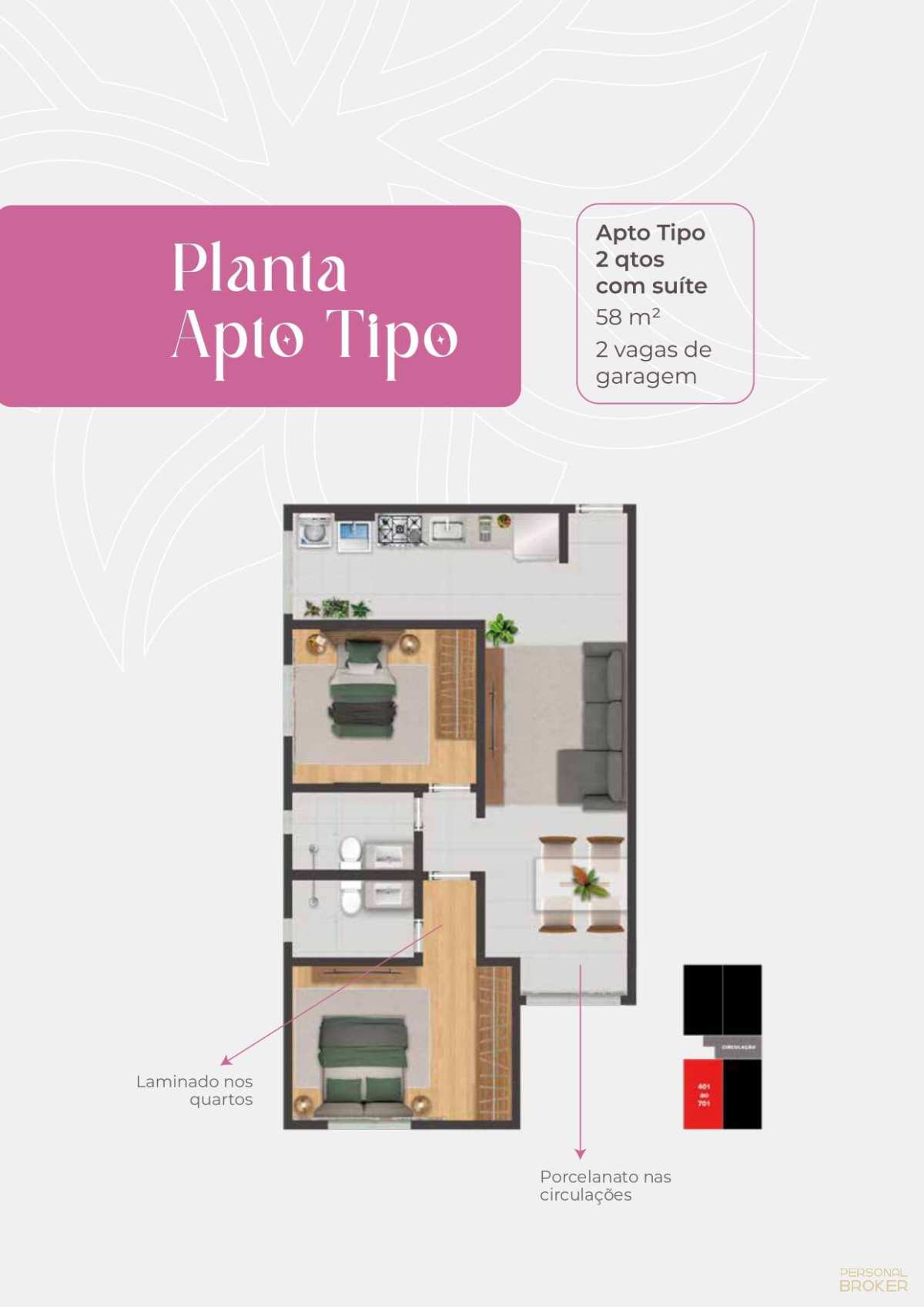 Tipologia: Apartamentos de 2 quartos com suíte