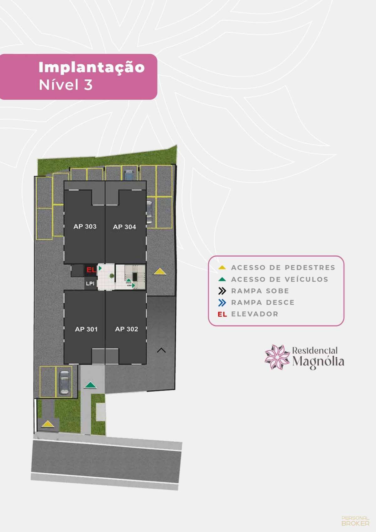 Três níveis de implantação com rampas de acesso