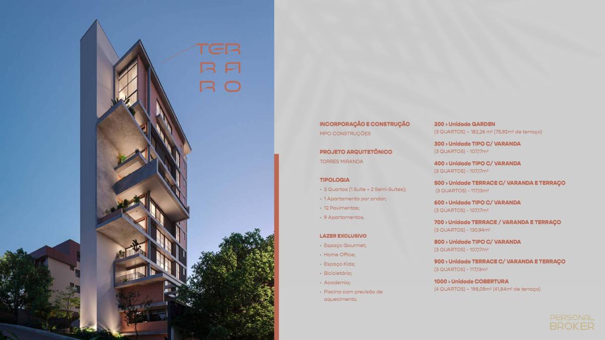 Apartamento à venda, no TERRARO, em Belo Horizonte, Santo Antônio, com 3 quartos, 107,17m²