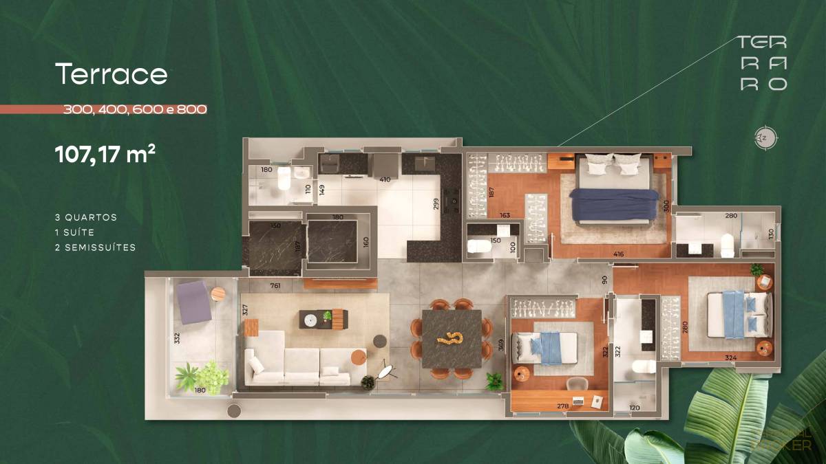 - Tamanhos: 107,17 m² - 198,09 m²