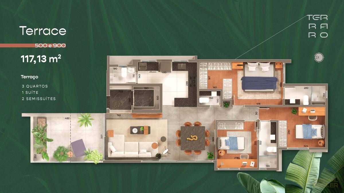 - Tamanhos: 107,17 m² - 198,09 m²