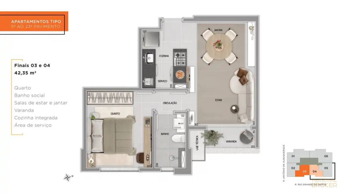 Unidades por andar: 6