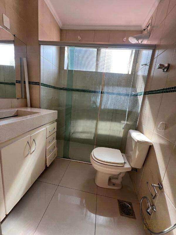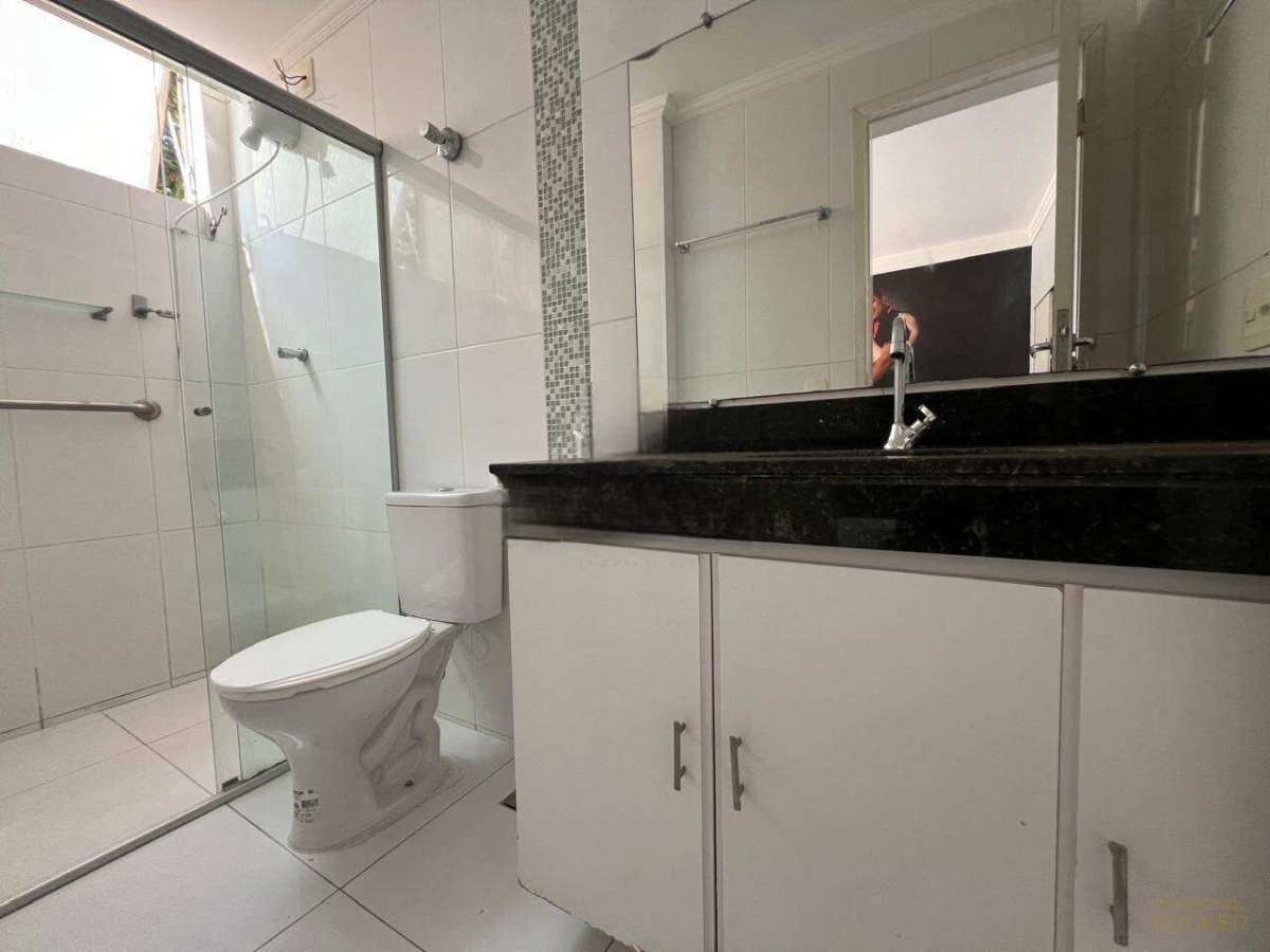 Banho social com armários, box blindex e espelho