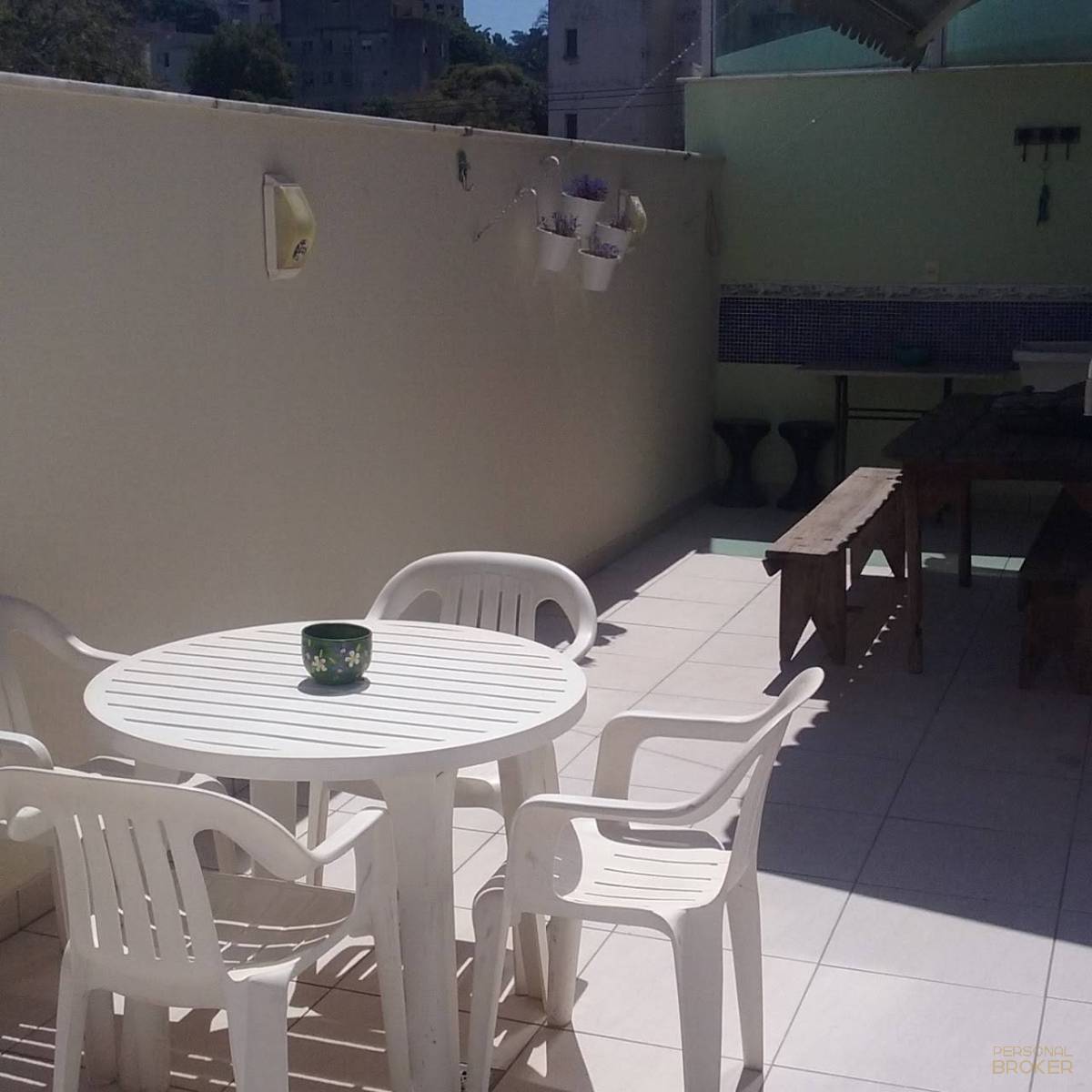 3 banheiros (suíte com box, social com box e de serviço básico)