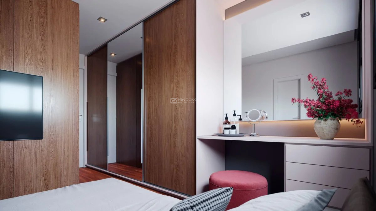 O imóvel tem 2 quartos, sendo 2 suítes, possui 3 banheiros e 2 vagas de garagem.