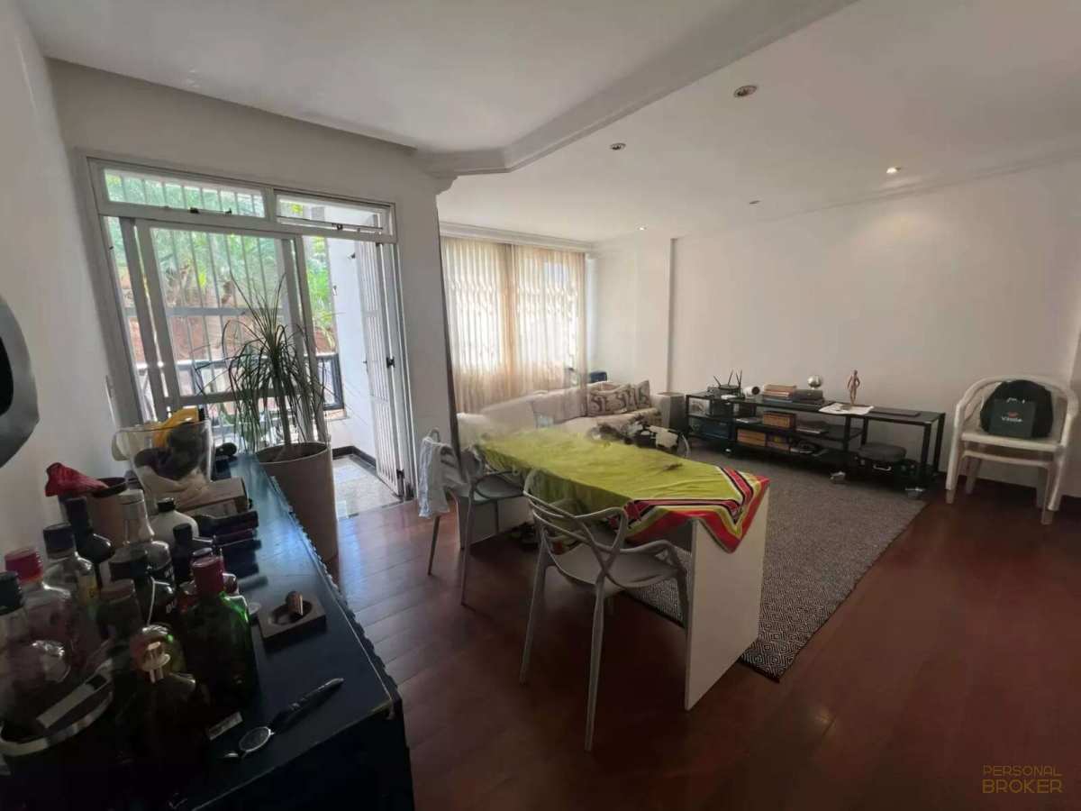 O imóvel tem 3 quartos sendo 1 de empregada, possui 2 banheiros sendo 1 de empregada, 1 sala para 2 ambientes, varanda e 1 vaga de garagem.