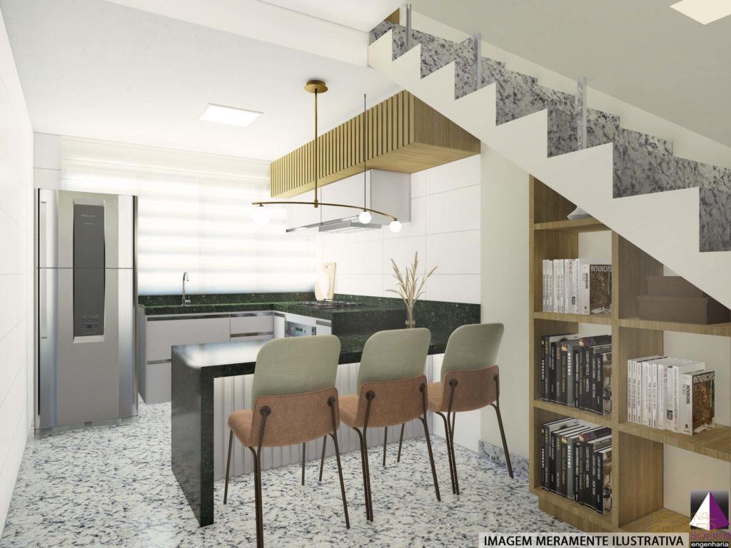 O imóvel tem 3 quartos, sendo 2 suítes, possui 3 banheiros e 2 vagas de garagem.
